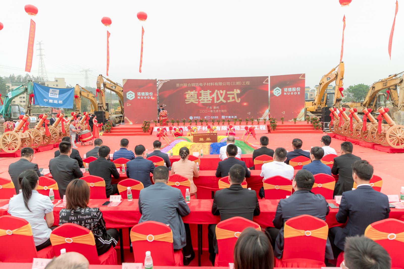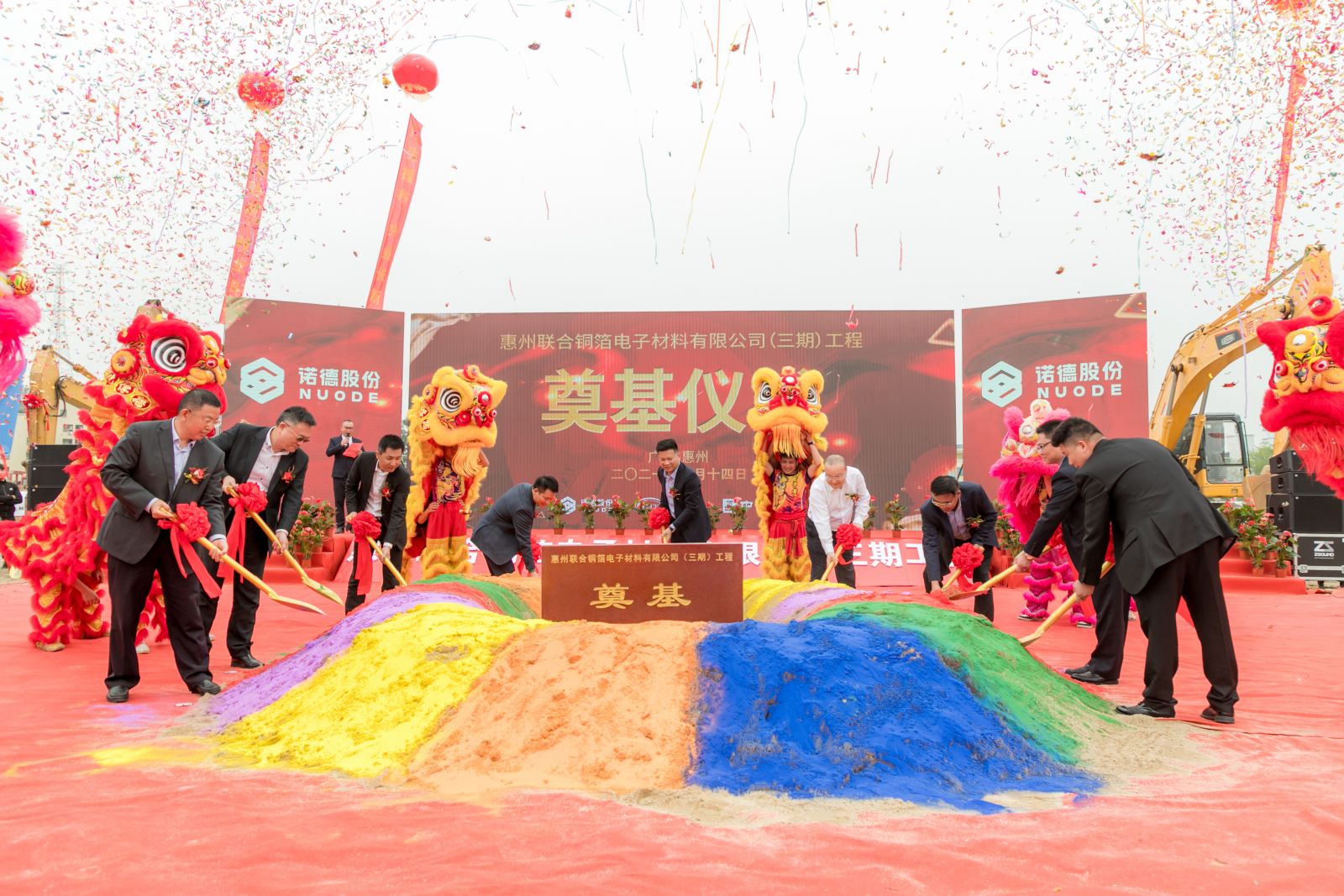 2021年3月14日 ,诺德投资股份有限公司(以下简称诺德股份)旗下公司,惠州联合铜箔电子材料有限公司(三期)12900吨项目奠基仪式于广东惠州举行。